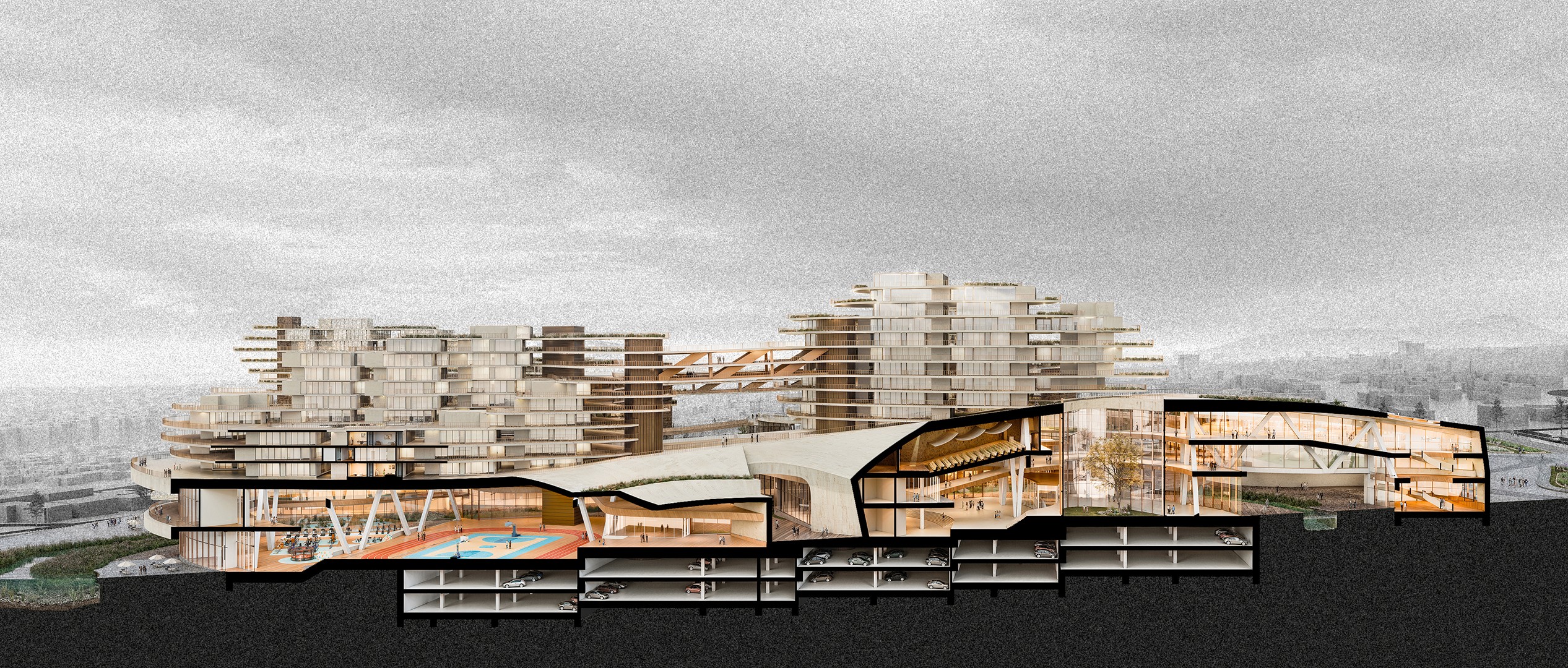 A mixed-use proposal for a sustainable multigenerational community shaped by productive loops, adaptable housing, and ecological systems.