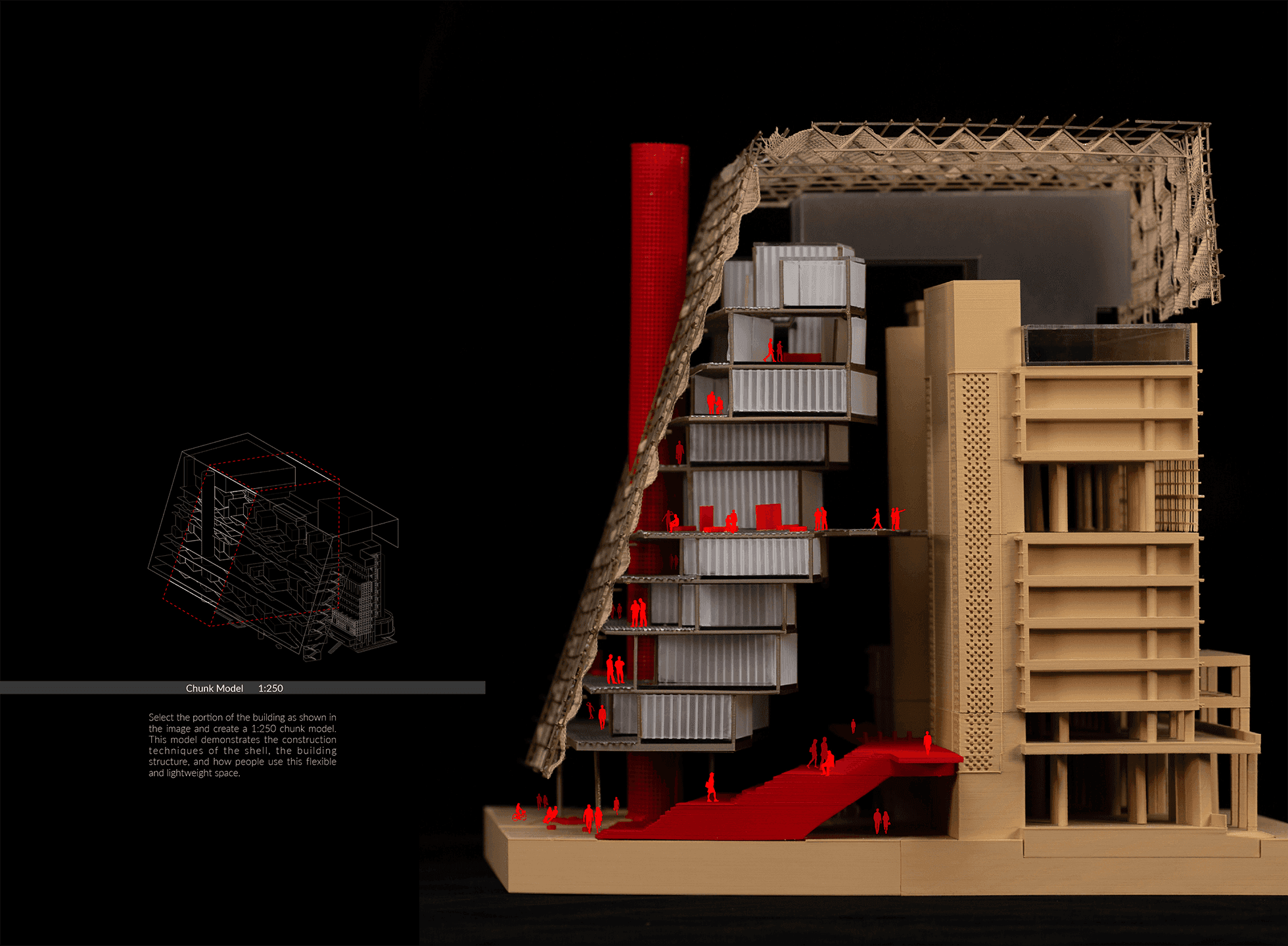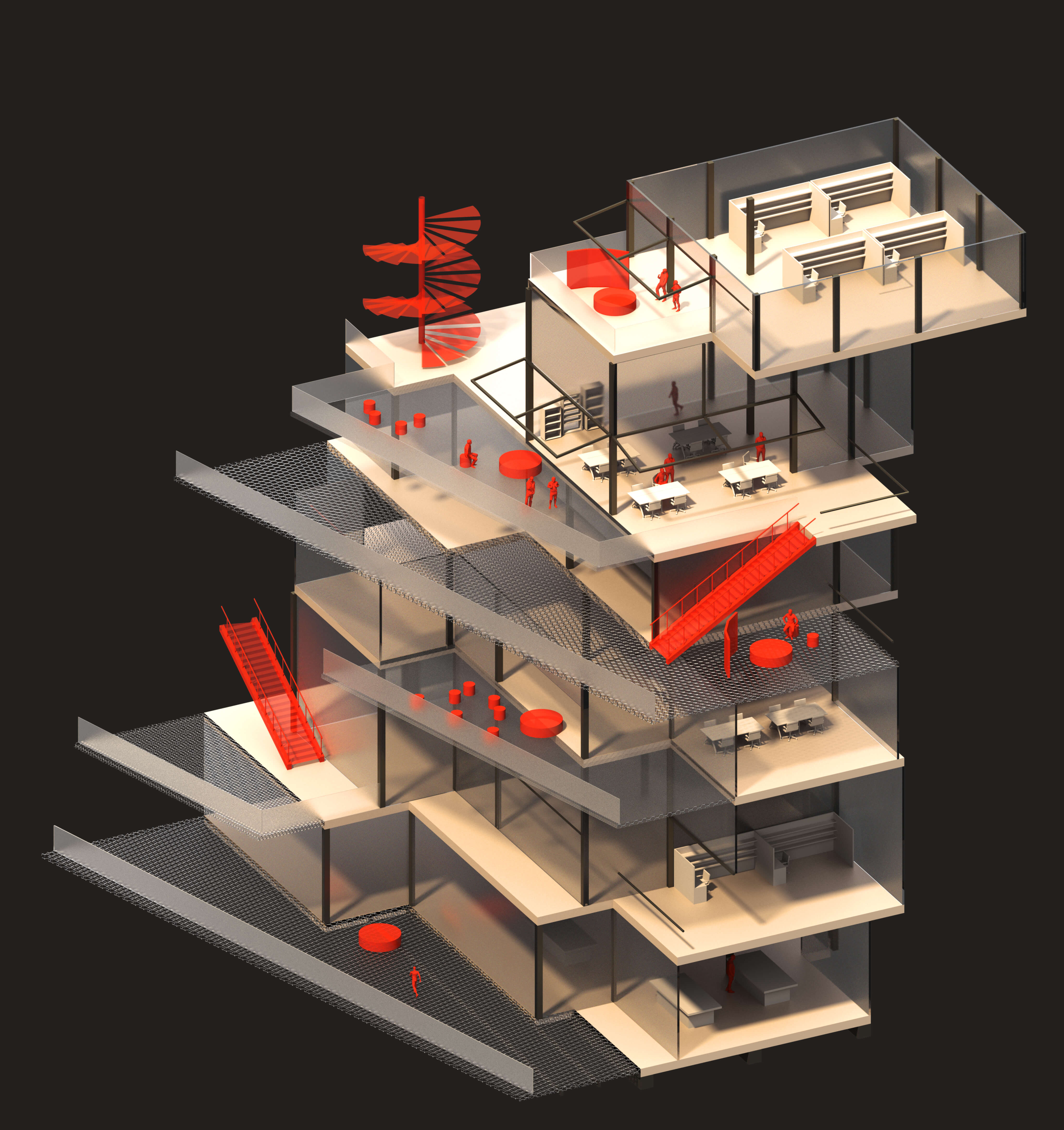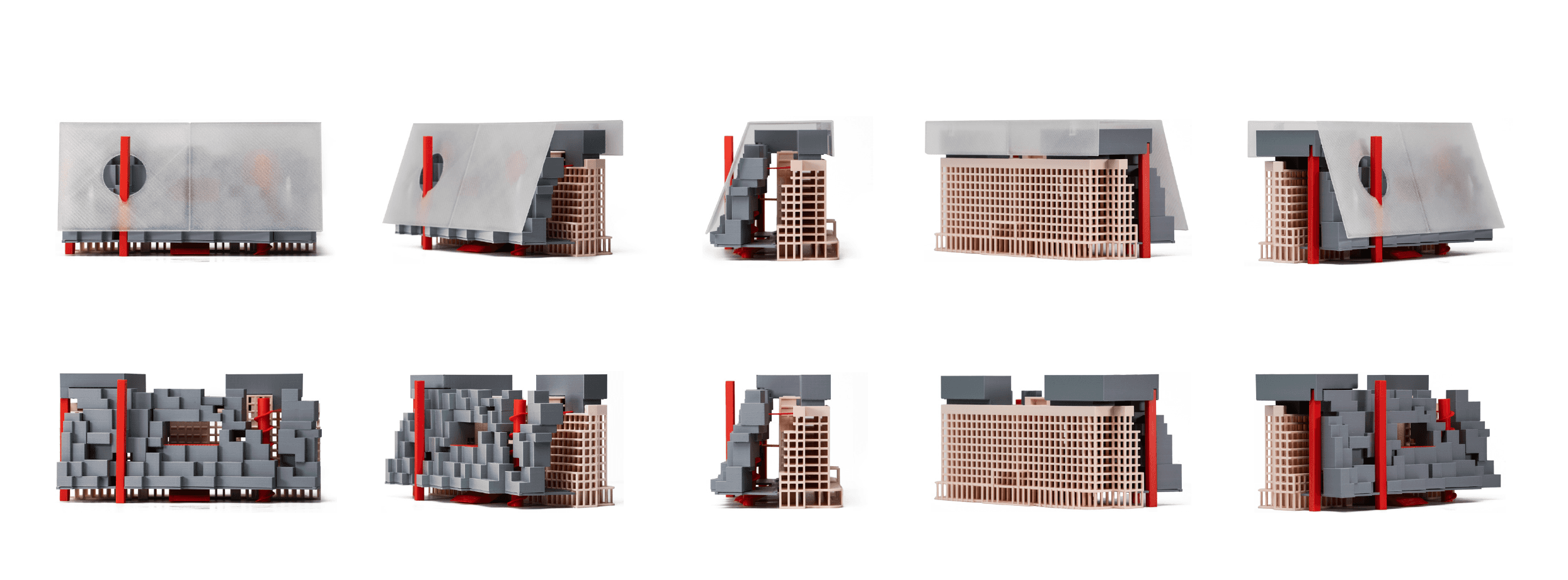 Inspired by street vendors as decentralized units of exchange, the project organizes the school into clusters that encourage informal interaction and shared learning. The overall building form is generated through the arrangement and combination of these program clusters.